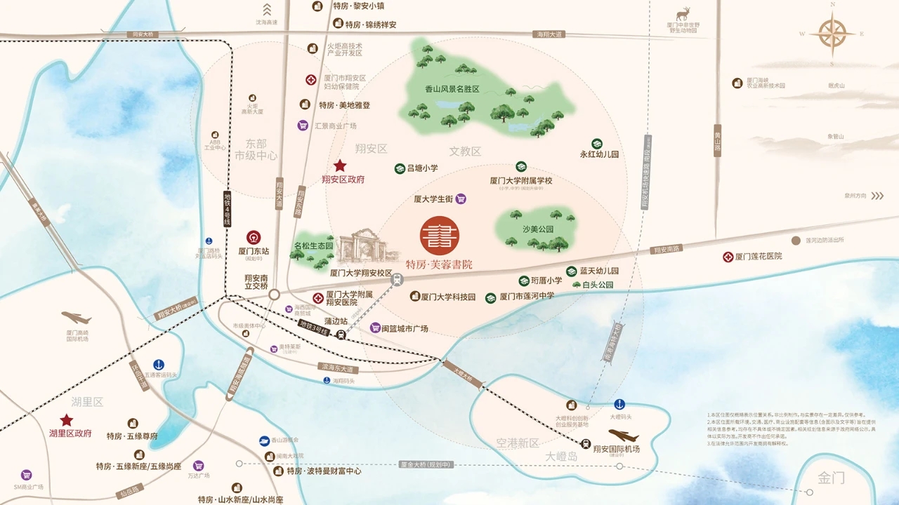 在这样的居住环境中,居民们的日常生活也将充满诗意和画意。每当夕阳西下,厦门大学(翔安校区)的白墙红顶建筑在晚霞的映照下显得格外迷人,而灯火通明的图书馆则传递出勤奋治学的精神。这样的景象不仅为居民们提供了视觉上的享受,更是在潜移默化中影响着他们的生活方式和价值观念。 对于有孩子的家庭来说,特房·芙蓉书院更是一个理想的居住地。孩子们从小就能接触到浓厚的书墨香,培养出深厚的文化底蕴。同时,由于距离厦大隶属翔安实验学校仅一步之遥,孩子们可以方便地接受优质教育,为未来的学习和发展打下坚实的基础。
