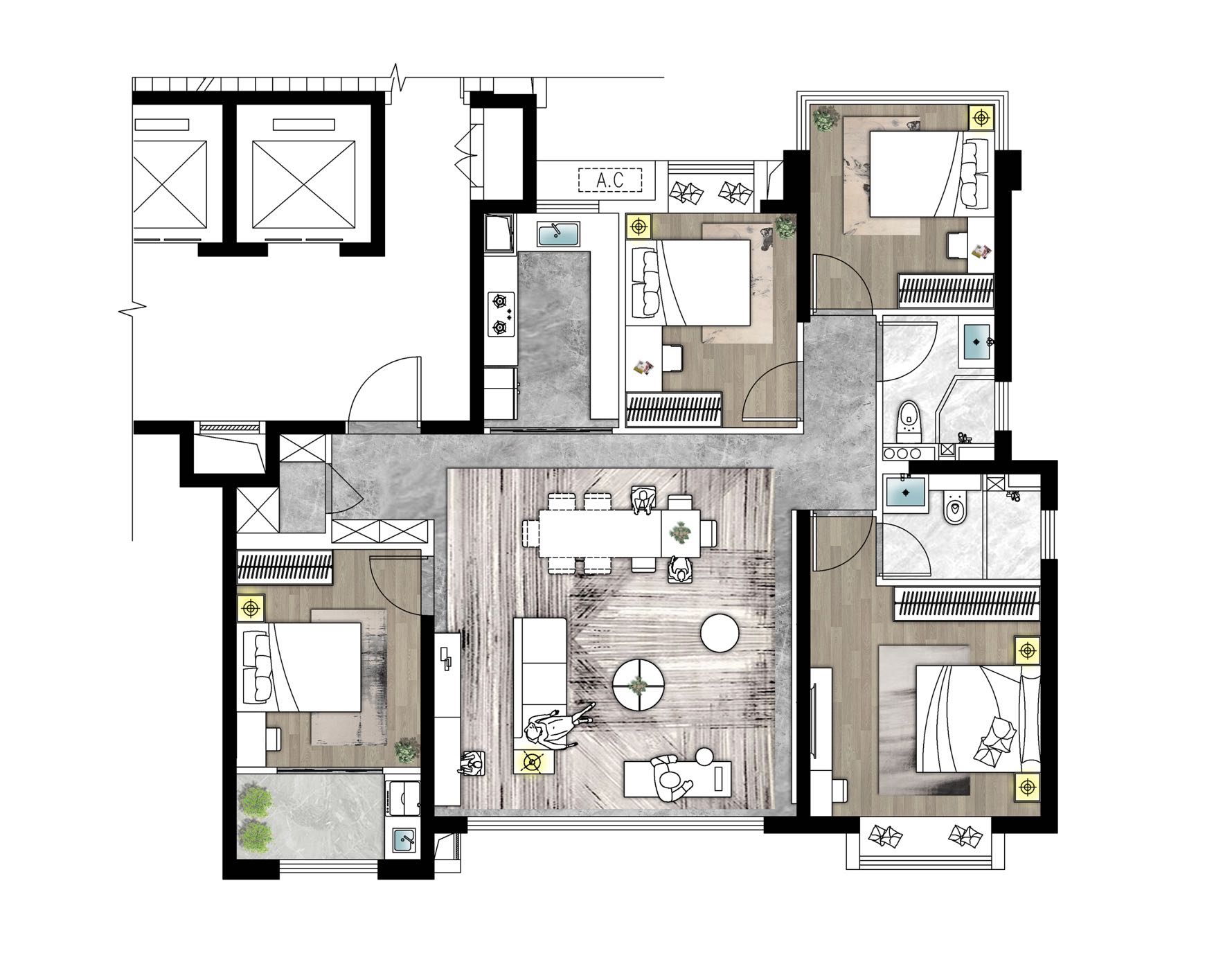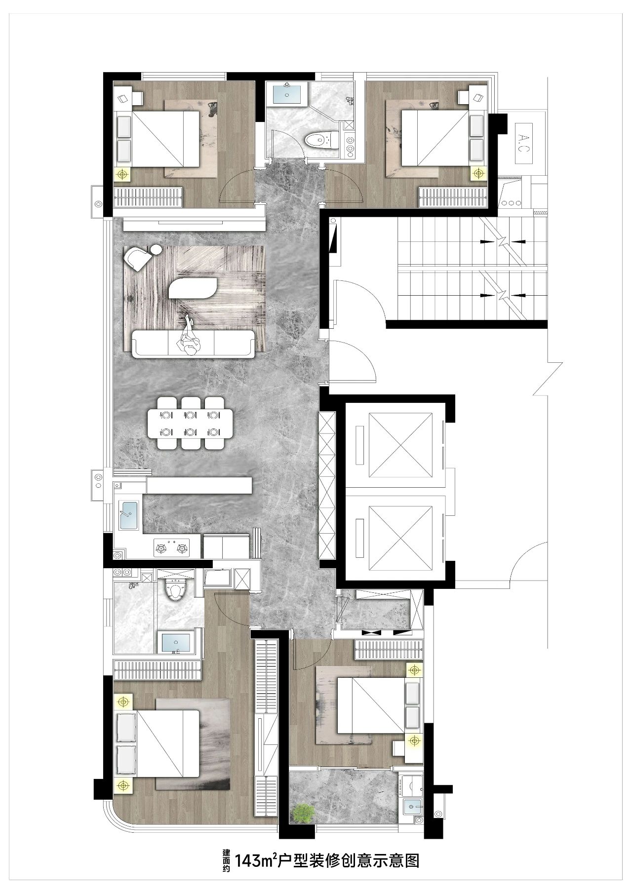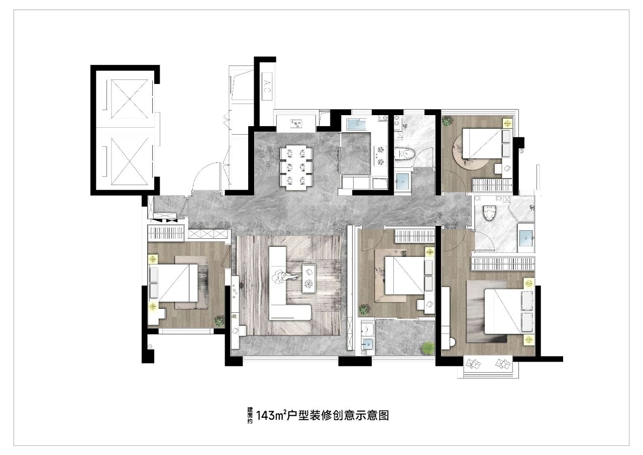 143平的样板房在设计上展现了多个优点:客厅面宽达到5.7米,宽敞明亮;全屋配备中央空调和新风系统,提升了居住的舒适度;厨房和主卫也接入了空调和新风系统,这在其他楼盘中较为罕见;两梯两户的设计,门厅空间充足,方便进出;四个房间面积均足够大,满足家庭需求;入户处设计了储藏空间,增加了实用性。
