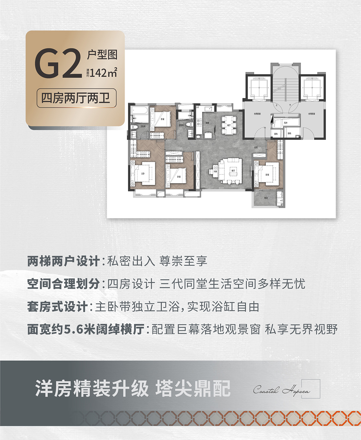 出色的户型设计,满足不同家庭需求 建发缦玥长滩的户型设计十分出色,高层住宅提供了建面约89-126平方米的三房至四房户型,而小高层和洋房则提供了建面约129平方米的洋房和建面约142平方米的小高层,客厅进深5.4-5.6米,南北通透,一梯三户。这些户型既实用又舒适,满足了不同家庭的需求。
