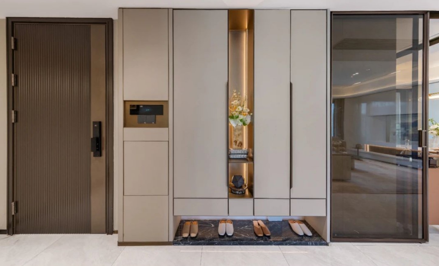 酒店式归家系统,仪式感升级 五缘海悦对于空间仪式感的精神追求,从归家的第一步便已显现。项目融入「把酒店带回家」理念,精心考究全球度假酒店归家仪式,打造出独具特色的酒店式归家系统。 由酒店艺术大门、星级环岛落客区、星光地库等组成的酒店式归家系统,为每一次出发与归来加冕仪式感。以酒店式服务的精致尊崇感为出发点,将功能性与美学感巧妙融合,打造约1300平下沉式私享空间,囊括自然会客厅、全龄健身区等功能空间,营造出归家即度假的精致生活方式。