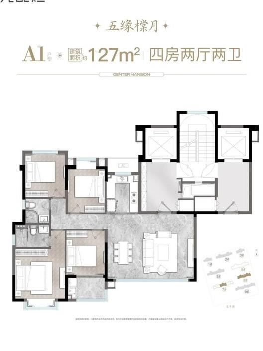 户型典范,舒适与奢华并存 以五缘橖月127㎡户型为例,其总价起于700万,采用类一梯一户设计,每户均配有约8㎡的入户前厅,营造出专属的归家仪式感。餐客厅一体设计打造出约26㎡的会客空间,搭配约5.6米的全景落地窗,无论是采光还是视野都达到了极致。南向的行政级套房式主卧,配备步入式衣帽间、270°观景飘窗和独立卫浴,每一个细节都彰显着居住的尊贵与舒适。