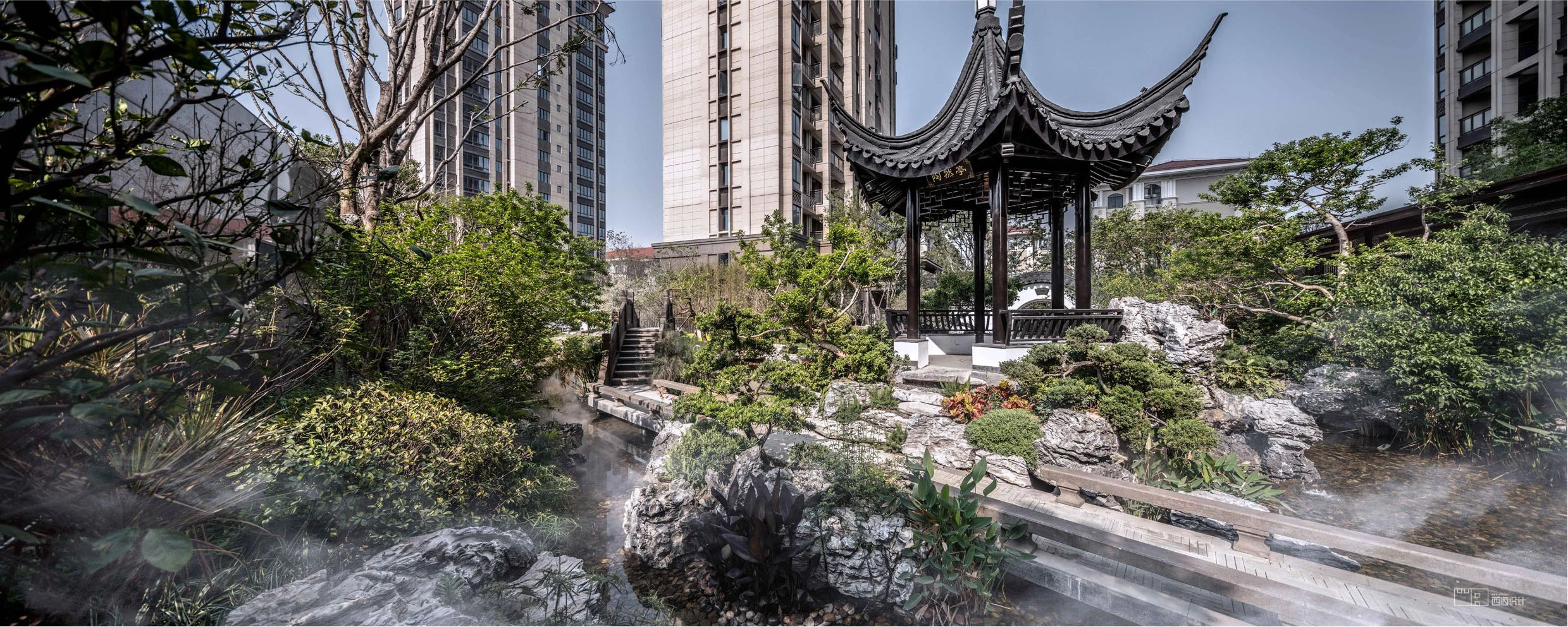 三、独特园林设计:新中式风格与现代审美的有机结合 在园林设计方面,海投自贸城展现了高超的艺术品味和深厚的文化底蕴。项目采用了新中式园林风格,通过“一园三门三廊五苑六进”的设计手法,将传统园林的精髓与现代审美相结合。水系与园林的巧妙融合,营造出一种大隐于市的宁静氛围。丰富的景观共享空间和层次分明的空间布局,使得每一处细节都充满了诗意和画意。漫步其中,居民可以深切体会到“信步语林近、薄暮静森林”的生活意境,感受到居家的尊崇感和舒适感。