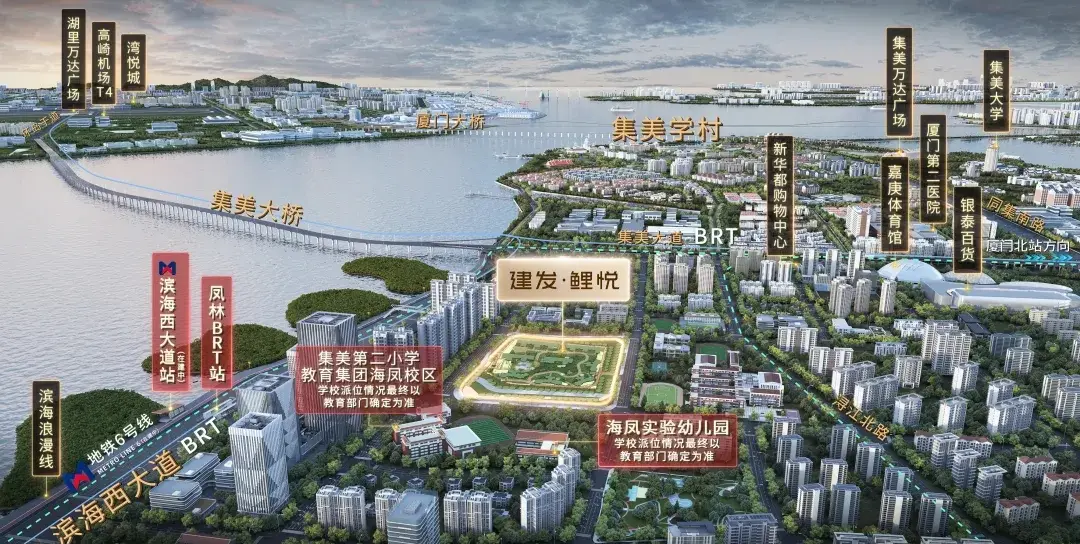 作为进出厦门岛的门户,这两宗地块占据了得天独厚的地理位置。紧邻集美大桥,无论是驱车还是公共交通,都能实现十分钟快速进岛,让繁华与宁静自由切换。此外,滨海西大道与同集路构建起强大的交通网络,无缝对接科学城、同安新城等发展热土。更令人振奋的是,双地铁(地铁6号线、9号线在建)环绕,滨海西大道站与嘉庚体育馆站近在咫尺,未来出行将更加高效便捷。