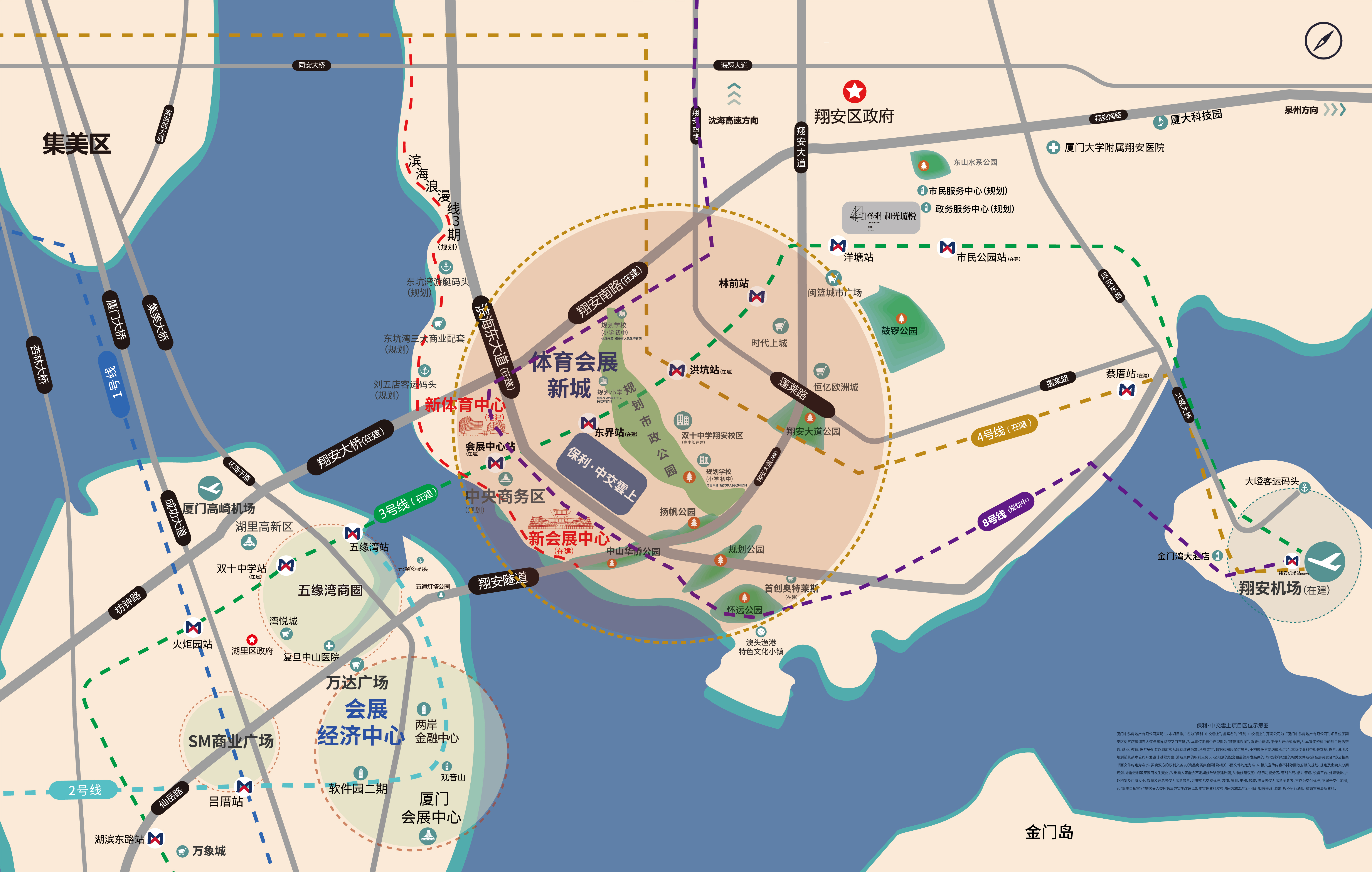 在商业配套方面,中交保利云上自带大型底商,同时附近两公里范围内有首创奥特莱斯已经开业。小区对面还规划有环湾商业、滨海商业街区以及星级酒店(规划中)。这些商业设施将为业主提供便捷的购物和休闲体验。交通配套方面,中交保利云上紧邻地铁3号线,翔安大桥已于2022年底开通,翔安隧道和地铁3号线也已通车。小区地处双地铁口中间(东界站和体育会展站),一站即可到达五缘湾,交通十分便捷。