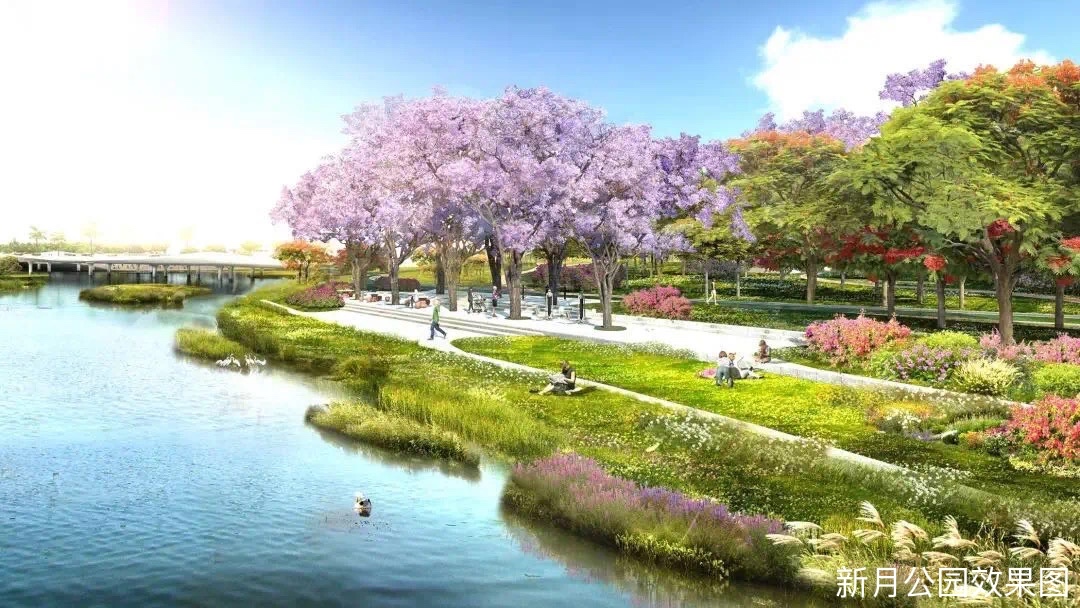 四、生态环境:绿意盎然,宜居宜业 项目东面约1公里处的新月公园拥有54万㎡的环湾景观带,为您提供了一个远离喧嚣、亲近自然的生态空间。在这里,您可以尽情享受新鲜的空气、宜人的景色,感受大自然的馈赠。