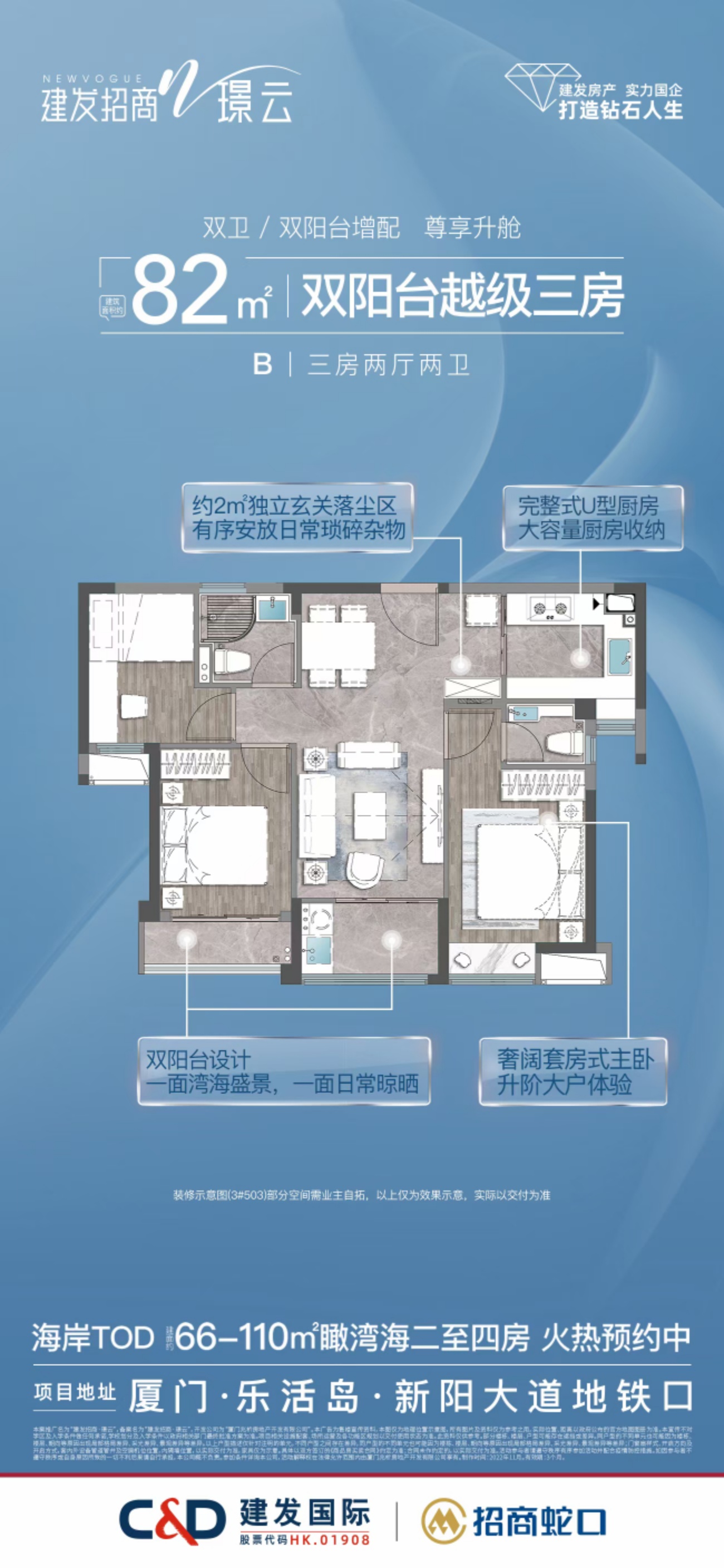这座岛屿虽不足3平方公里,却汇聚了丰富的商业、交通、教育及公园资源,极大地提升了生活的便捷性和舒适度。其中,2#人气户型的82平方米三房设计独具匠心,巧妙地放大了湾海生活的空间感,让居住者能够充分享受湾海的壮丽景色。独立的玄关落尘区为小户型提供了额外的收纳空间,确保家中物品的有序存放。 海上别墅的设计灵感源于自然,五开间朝南的布局有效解决了小户型采光的问题。餐厅与客厅的一体化设计,不仅延展了空间尺度,还满足了家庭生活的多样化需求。双阳台的巧妙设计,一侧用于晾晒衣物,另一侧则可尽情欣赏湾海和园林的美景,让生活更加丰富多彩。此外,同面积段罕见的双卫生间设计,进一步提升了居住的舒适度和便利性。