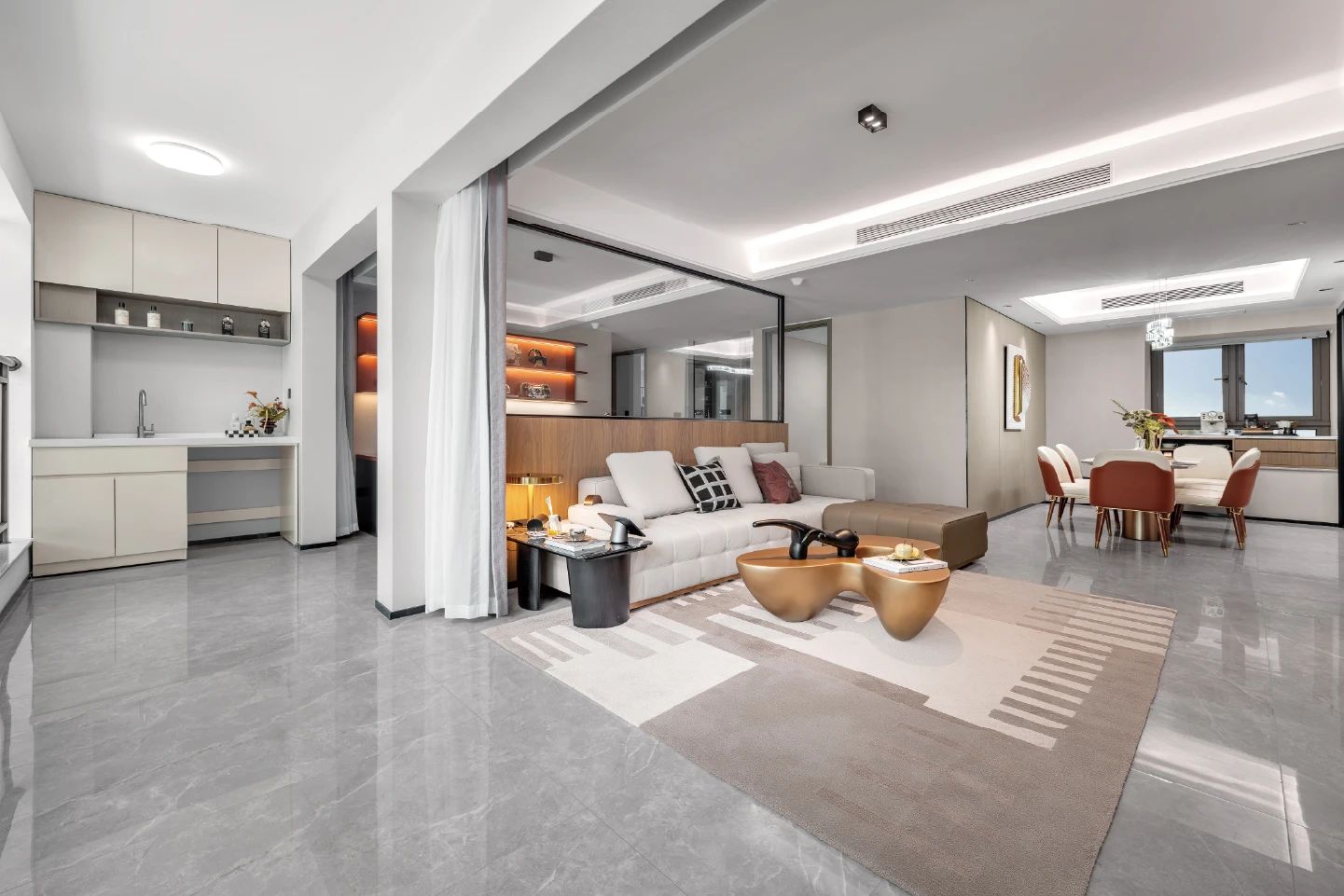 心厝项目在空间利用方面的创新主要体现在其独特的蝶型建筑设计和大横厅布局上。蝶型建筑结构不仅美观,而且能够有效地利用空间,使得每个户型都能享受到充足的自然光线和良好的通风条件。此外,大横厅的设计更是该项目的一大亮点,它打破了传统住宅中客厅、餐厅和卧室分隔的布局,将这些功能区域融为一体,形成一个宽敞的公共活动区域。这种设计不仅提高了空间的利用率,也增强了家庭成员之间的互动性,使得居住者能够在同一个空间内享受更多的生活乐趣。