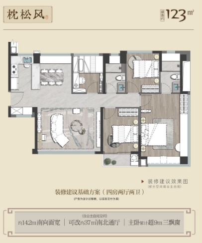 充足采光:南向约13米的四开间设计,确保室内光线充足。