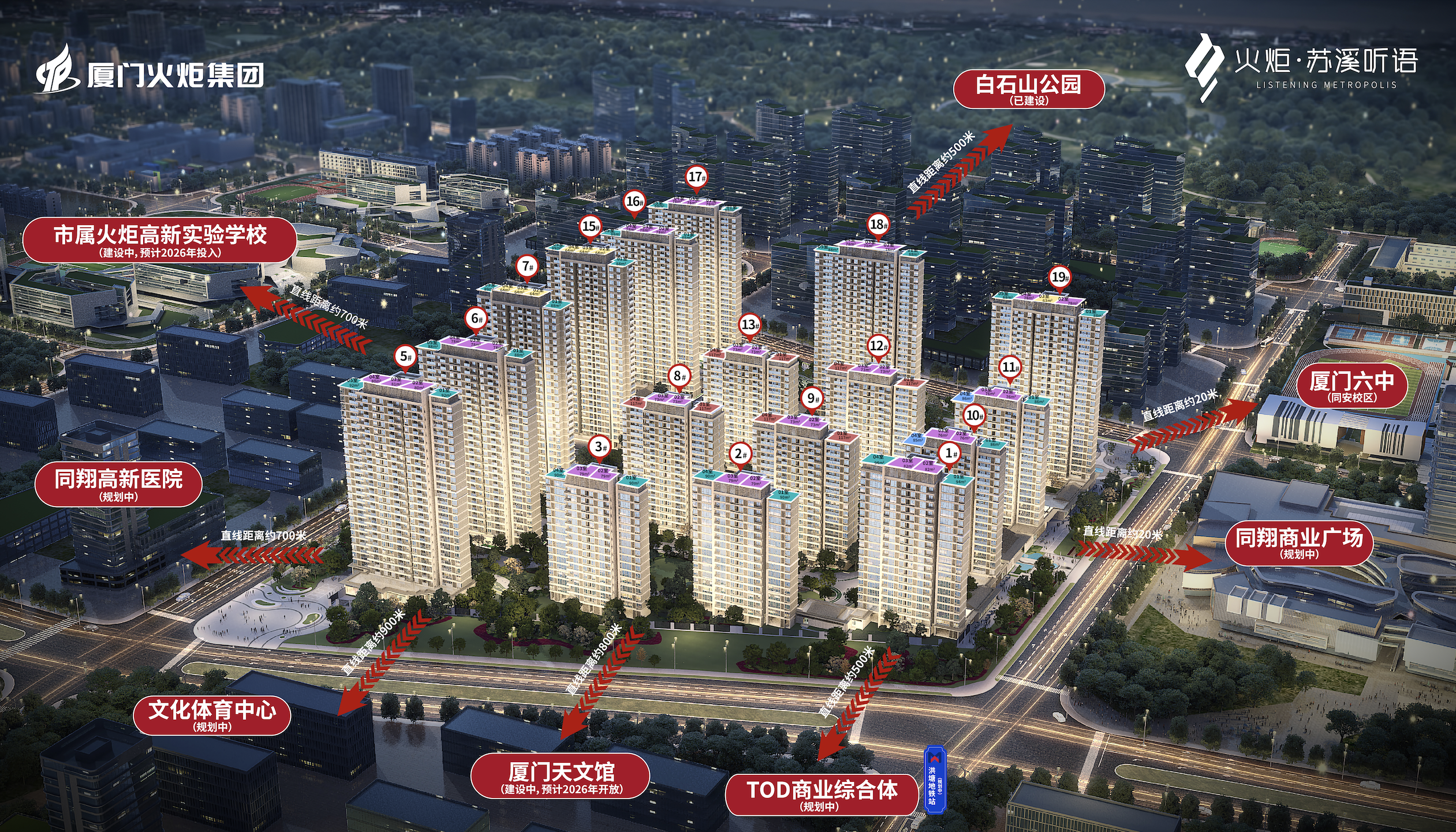 项目概述 火炬·苏溪听语,这一新兴的住宅项目,坐落于风景秀丽的同翔高新城核心地带,与厦门六中同安校区高中部仅咫尺之遥。该项目不仅地理位置优越,而且在户型设计和配套设施方面均展现出高度的合理性和完善性,因此被誉为同安区域内全龄段人群的理想居住选择。无论是年轻的小家庭,还是多代同堂的大家庭,都能在此找到适宜的居住空间,享受舒适和谐的生活环境。