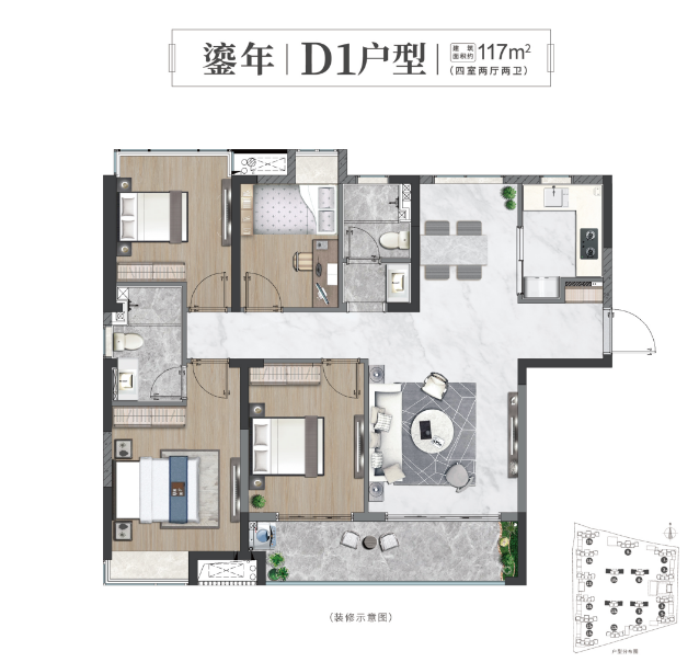 - 设计特点:四居室设计,空间宽敞舒适,南北通透,确保室内空气流通与采光。