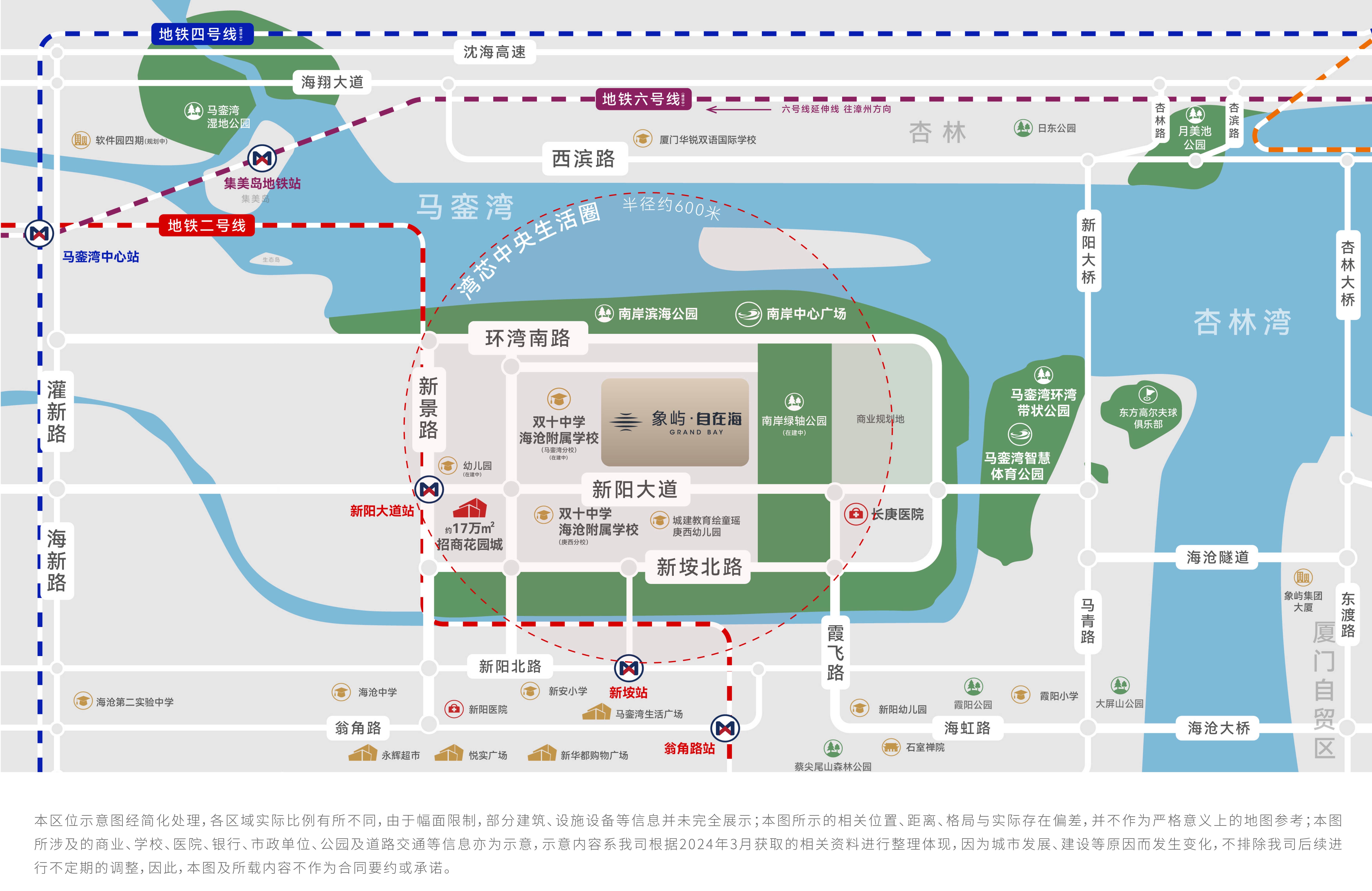 教育配套 教育方面,象屿自在海占位片区教育主场,与双十中学海沧附属马銮湾分校(在建中)为邻,形成12年黄金教育链。此外,周边还有多所幼儿园,为家庭提供便捷的教育资源。交通配套 交通方面,项目距离地铁2号线新阳大道站仅约600米,出行十分便利。同时,周边还有多条公交线路,可轻松到达市区各个角落。 商业配套 商业配套方面,项目附近有招商花园城、悦实广场等大型购物中心,满足居民日常购物、娱乐需求。此外,项目自身也规划有商业设施,为居民提供更加便捷的生活服务。