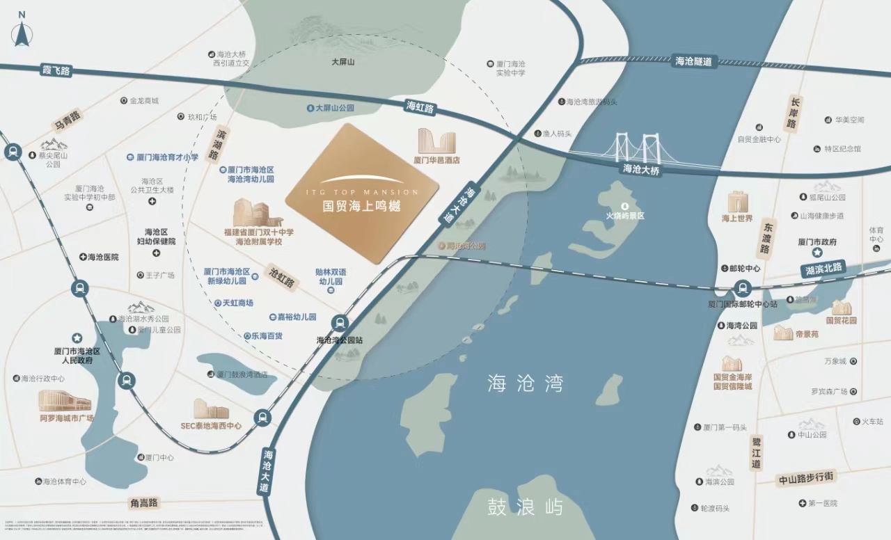1. 项目背景与定位 国贸地产此次将目光聚焦于备受瞩目的海沧湾国际湾区,这一决策无疑将为厦门的城市发展带来新的惊喜。海沧湾作为国际花园城市的亮丽名片,不仅是两岸经济文化交流的门户,也是连接城市与海洋、展示城市魅力的重要滨海生态区。其拥有的不可复制的稀缺资产,包括令人陶醉的海岸线、浓郁的教育和人居氛围以及现代化的商业设施,使得海沧湾成为展现高品质、高颜值厦门城市魅力的重要窗口和人气聚集地。 国贸海上鸣樾项目,作为国贸地产在海沧湾的最新力作,将凭借其卓越的岸线开发能力,力争打造成为城市的新地标,超越滨海生活的想象。该项目不仅是近十年海沧湾区唯一出让的住宅用地,更是一个集自然、教育、交通、商业等多重优势于一身的综合性项目。