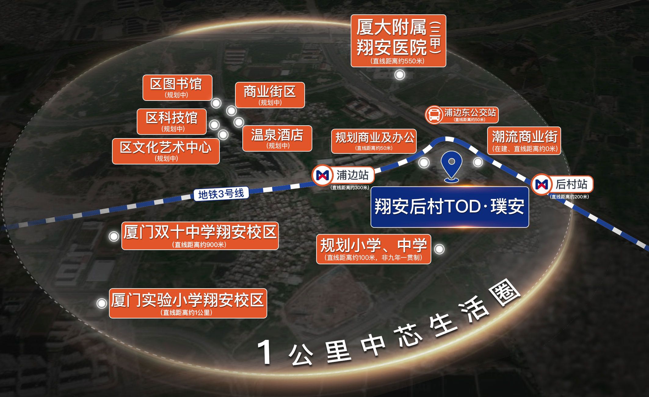 一、交通网络,畅行无阻 翔安后村TOD·璞安的地理位置得天独厚,交通网络四通八达。项目紧邻浦边站和后村站,距离仅约200米,使得居民可以轻松接入城市轨道交通系统。特别是地铁3号线的直达服务,更是将五缘湾等重要区域与项目紧密相连,极大地提升了出行的效率和便利性。无论是日常通勤、周末购物还是假日休闲,都能实现快速抵达,让都市生活的每一刻都充满可能。