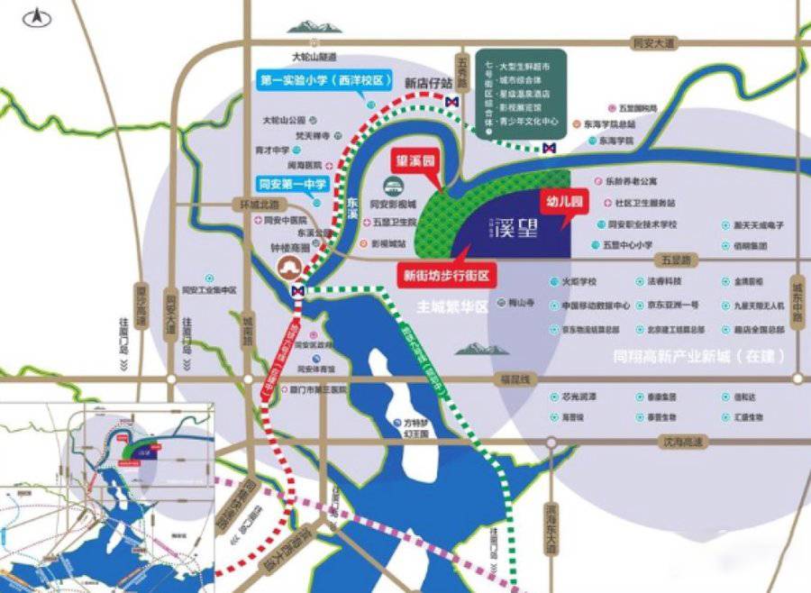 周边汇集一高速、6号(在建中)/9号(规划中)双地铁新店仔站(距项目1KM)、五大道等五维立体交通网络。毗邻同安老城区钟楼以及中山路,东侧同翔高新技术产业园基地聚合全市高精尖商务人群。