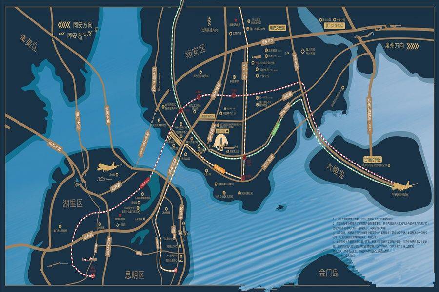 楼盘周边有地铁3号线、4号线、5号线、703公交林厝站,翔安大嶝机场与高崎机场的中心位置