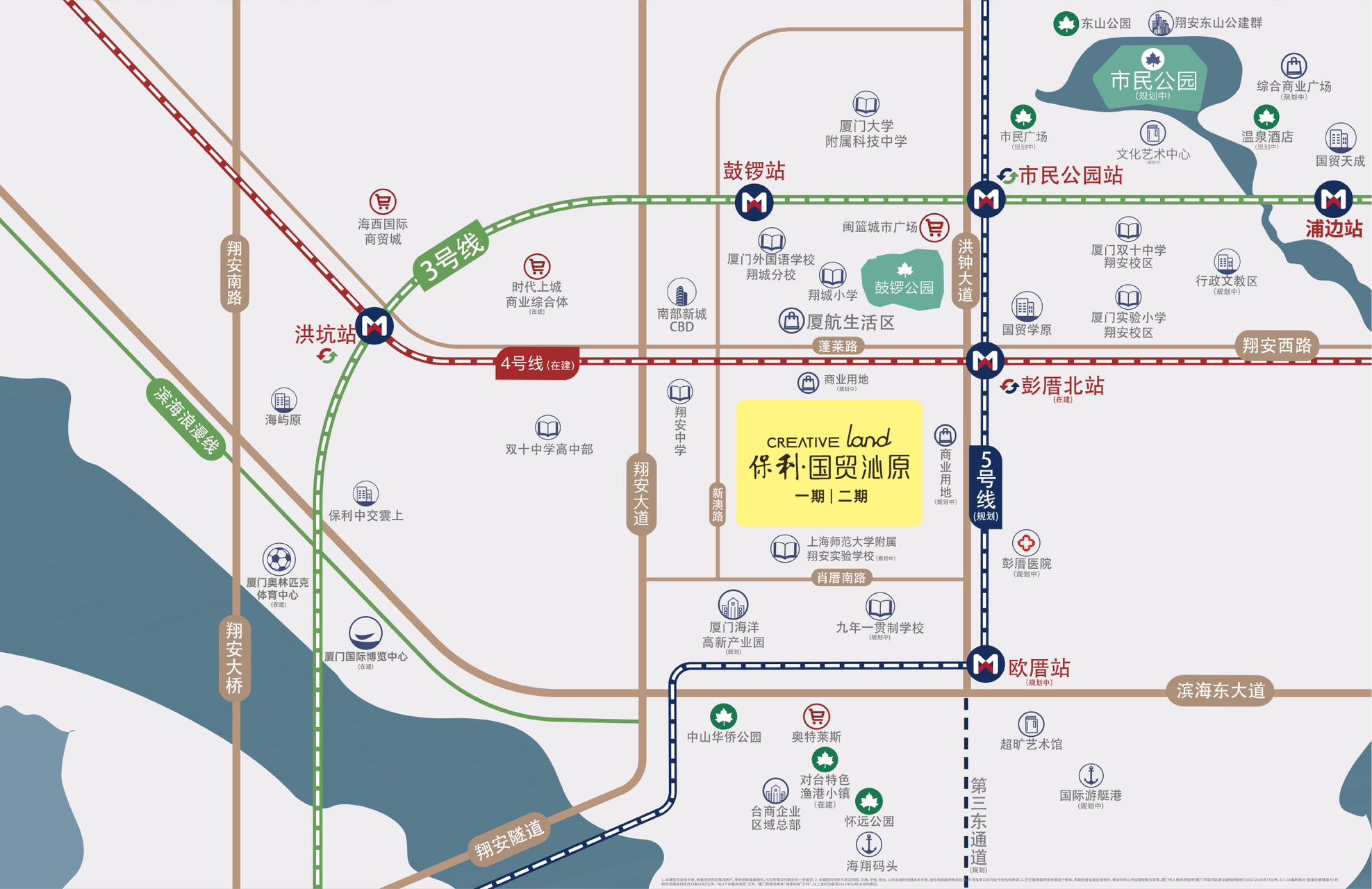 项目的地理位置非常优越,紧邻翔安隧道口,一步即岛芯,可以享受到便利的交通和丰富的配套设施。首先,地铁4号线(在建)和5号线(规划)彭厝北站双地铁在侧,可以快速链接厦门本岛与新会展中心(在建)、翔安国际机场(在建),为住户带来国际化的便利。其次,项目周边有四大商圈和五大公园,包括厦航三六里、奥特莱斯、鼓锣公园等,无论是购物还是休闲都能满足需求。此外,文娱配套丰富,3km范围内可达超旷美术馆、澳头特色村,让住户的生活更加多彩。