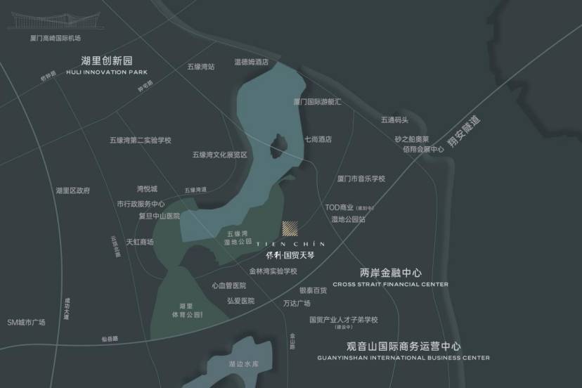 保利国贸天琴,是由保利、国贸、中交三家知名房企联合打造的高端人居楼盘,位于厦门市湖里区五缘湾高金林片区。项目隔五缘湾内湾和湿地公园,对望国贸天琴湾,以环境景观无敌为最大的卖点,旨在为厦门市民带来全新的高端居住体验。