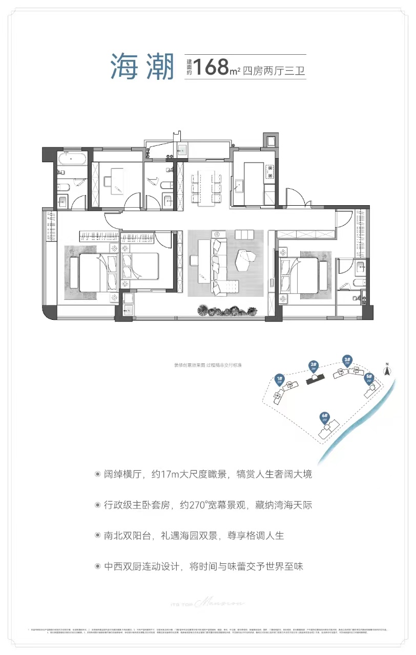 在户型选择上,国贸海上鸣樾打破传统,推出了多种令人惊喜的选择。从130平米起步的4房户型到168平米的3卫产品,再到罕见的193平米5房3卫产品,购房者有了更丰富的选择。这种多样化的户型布局,满足了不同家庭的需求,为他们提供了更多的选择机会。