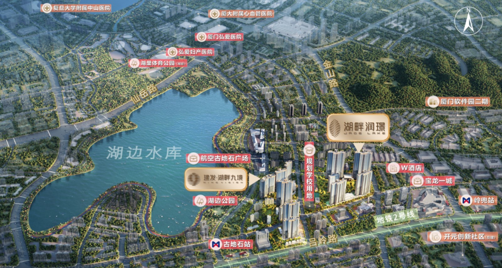 湖畔润璟是位于厦门的一个新兴住宅区,其地理位置优越,靠近湖边水库和五缘湾,且紧邻地铁2号线的古地石站,交通便利性极高。这个区域不仅是一个住宅区,还融合了艺术购物中心的功能,提供了丰富的购物、休闲和艺术欣赏体验。作为鹭岛规模空前的城市更新战略要地,湖畔润璟的未来发展潜力巨大。预计将与观音山、软件园二期等地区共同构成岛内乃至中国大陆首个两岸超级金融中心,这将进一步提升该区域的商业价值和居住吸引力。
