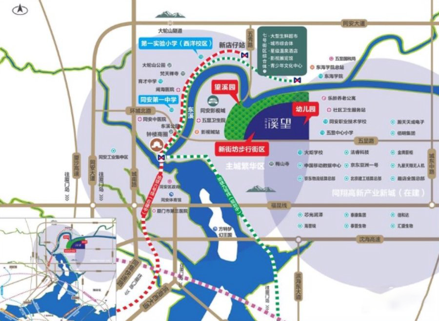 【黄金地段,珍藏人生】位于福建省厦门市同安区的万科禹洲世茂溪望,是同安老城区、同翔高新区和国度景色区黄金枢纽的瑰宝。这个地方融合了自然之美、生活品味与安静,让您可以真实地回归自我,享受生活的美好。【极致享受,占有繁华】溪望与同安影视城、北辰山和梵天寺相邻,周边环绕着湿地公园、大轮山公园、梅山公园和东溪公园等绿地。这里是个天然的氧吧,是您和家人理想的栖息之地,让您尽情享受大自然的美好。