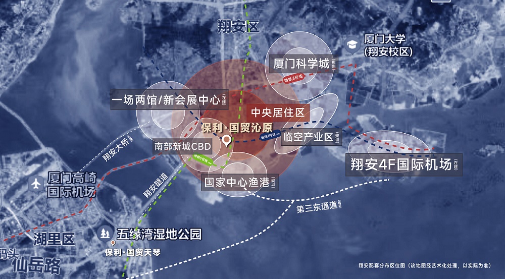 保利·国贸沁原,坐落于翔安新城的黄金地段,其得天独厚的地理位置使其成为这一地区的交通中心。隧道口附近的优越位置,使得该项目紧邻即将建成的4号线地铁站和规划中的5号线地铁站,为居民提供了极为便利的地铁换乘服务。这里距离4号线(在建)/5号线(规划)换乘站彭厝北站仅约600米的距离,为居民提供了便捷、快速的地铁通行方式。此外,自驾车也同样便利,随着翔安隧道的建成,居民可以几脚油门一隧跨岛,无需等待红绿灯,甚至无需导航,即可到达目的地。 随着地铁的通车,居民的出行将更加高效便捷。4号线的快速通达将使居民可轻松抵达翔安新机场、厦门北站等重要交通枢纽,而换乘3号线则可直达岛内各处。未来5号线的开通更将使居民与岛内的联系更加紧密,实现了与岛内的无缝连接,为居民提供了更广阔的出行空间和更多的选择。