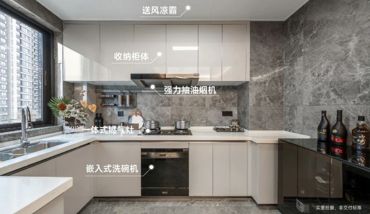 整体定制橱柜,燃气灶、抽油烟机,美观实用兼具