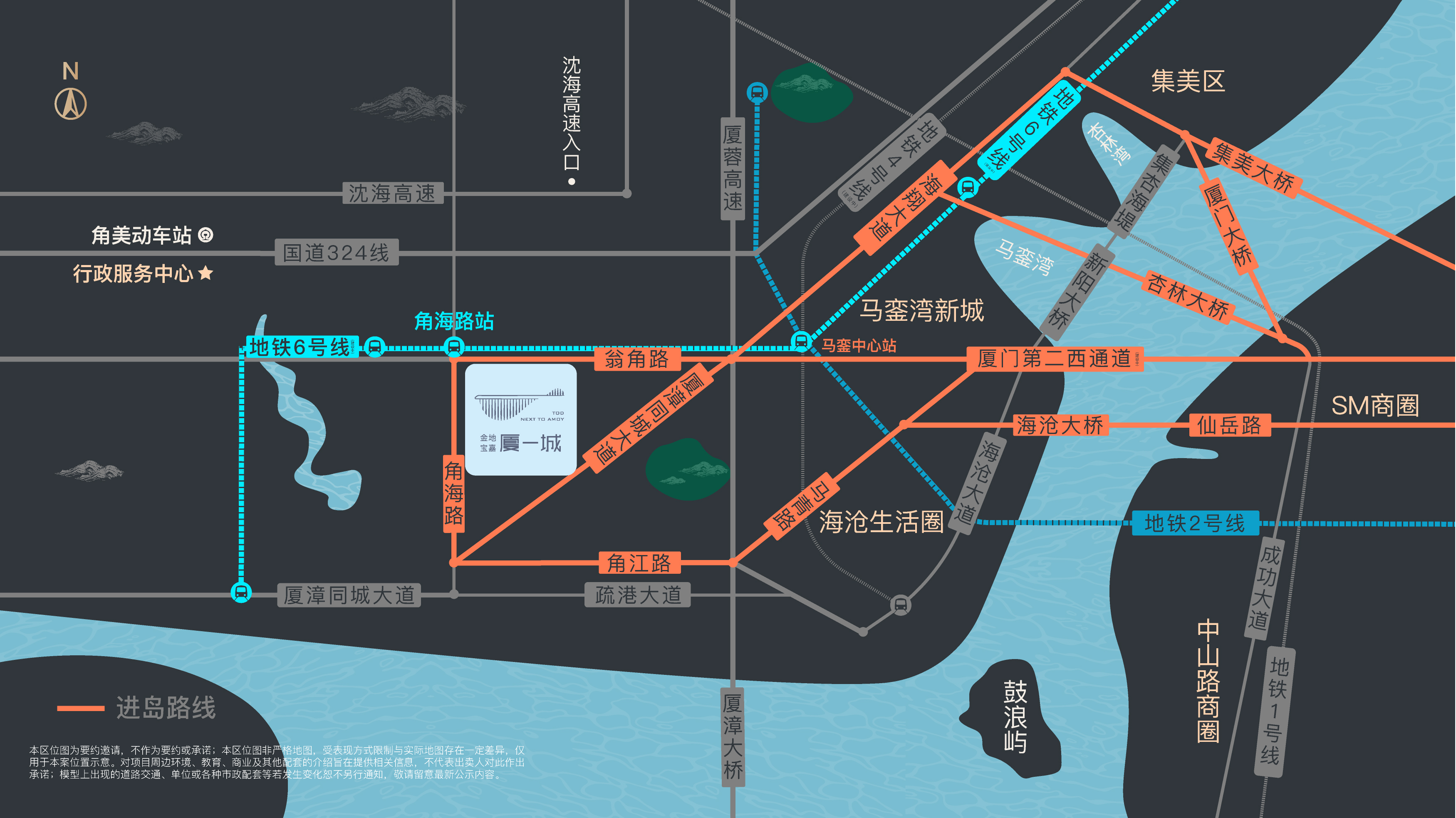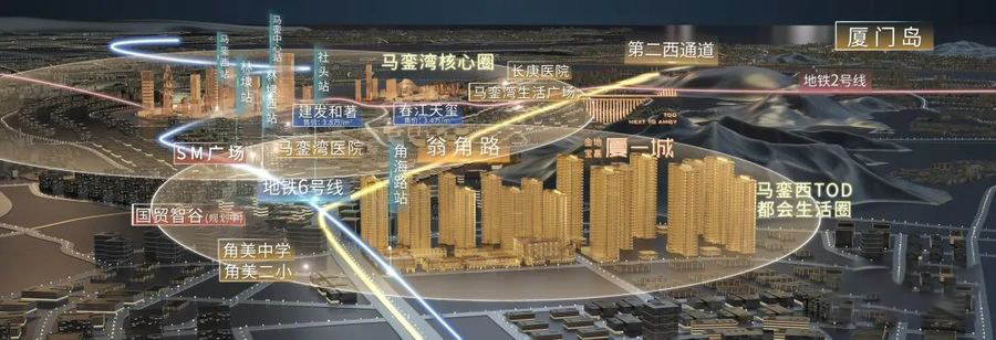 在这个约30万㎡的TOD大城中,金地宝嘉·厦一城紧邻6号线角海路地铁站(在建),基建配套全面升级。无论是出行还是购物,都能得心应手。地铁2站抵达林埭西站,可尽揽SM广场(在建)的繁华;5站便可到达马銮中心站,再换乘2号线便可无缝接驳岛内;家门口的翁角路(在建)更是衔接厦门第二西通道(在建),直线进岛。全方位覆盖的城市交通网络,让将来的厦一城,畅行无阻。
