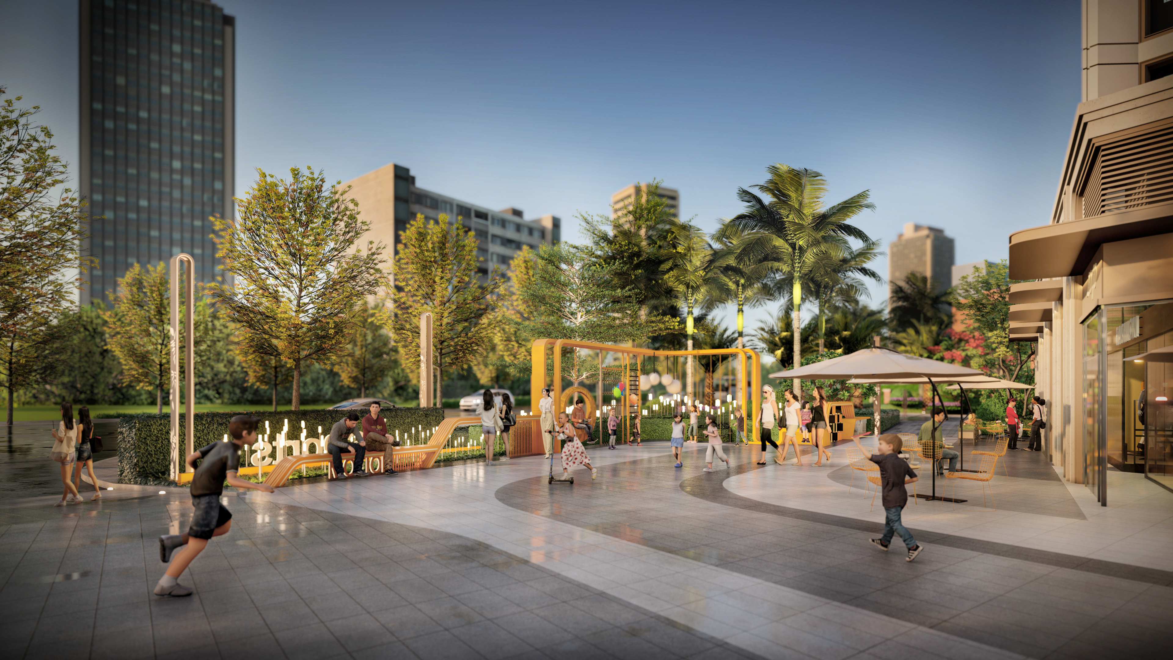 联发保利·臻樾的园林设计同样值得一提。项目借鉴了城市口袋公园的典范——美国佩雷公园的设计理念,打造了一个既在城市中心又拥有舒适自然体验的秘境花园。精选的臻稀植物、组团式布局以及随地形变化形成的立体丰富动线,都让人仿佛走进了一幅海岛画卷。夜晚的灯光之下,静谧的包厢成为了归家宾客洗涤一天疲惫的场所,而秋千装置则营造出了意境唯美的网红打卡点。
