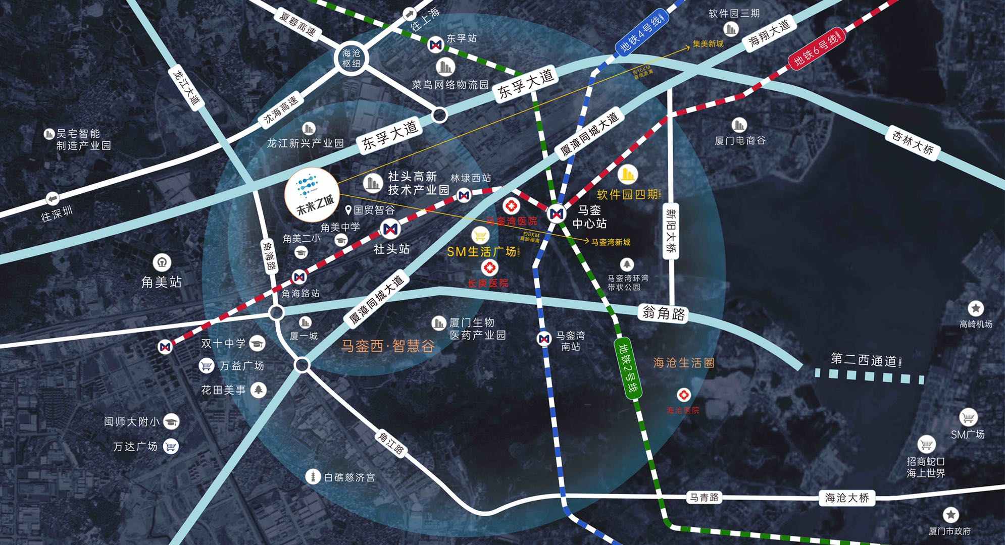 项目约900米处建有厦门地铁6号线社头站(暂定名、在建中),一站SM(在建中),此外高铁、地铁、高速、路网等交通构建完善,串联岛内外。
