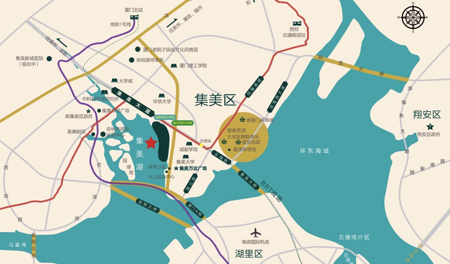 交通方面,水晶湖郡更是得天独厚。周边环绕着三座大桥——厦门大桥、集美大桥、杏林大桥,以及三条轨道——BRT、地铁1号线和6号线,构成了便捷的交通网络,为您的出行提供了极大的便利。选择水晶湖郡,意味着您将在湖光山色中尽情享受生活的美好,同时又不失都市的便捷与活力。