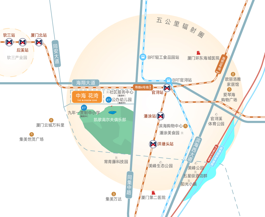 在厦门这座繁华的海滨城市中,有一个备受瞩目的住宅项目——中海花湾,它凭借其得天独厚的地理位置、匠心独运的建筑设计、宏大规模的社区规划以及优美宜人的园林环境,成为了众多购房者心中的理想居所。 城芯热土,便捷生活 中海花湾坐落于厦门的热销板块,地处城市中心,这一地理位置的优势不言而喻。交通网络的发达使得居民出行极为便利,无论是通勤还是休闲,都能在短时间内抵达目的地。周边商业、教育、医疗等配套设施的完善,更是为居民提供了全方位的生活保障,使得居住在此的人们能够享受到都市生活的便捷与高效。