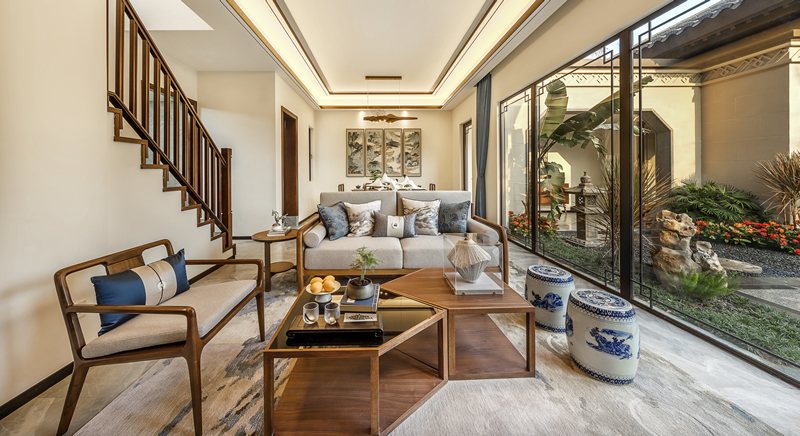 特别是对于上叠部分,这次的设计相当于一次更新换代。院子终于位于自家客厅门口,且二层即可入户。这一变化让山外山的上叠从叠墅的价值(1.5)升级为院墅的价值(2)。而下叠则因为与上叠入户彻底分开,衣帽间得到增强,其价值也得以凸显。 山外山在产品设计上独具匠心,将院子设计成“L”型,使得每一户都能享受到边套的使用体验。大开间的布局,横向进深达到8.5米,比同级产品宽出1.5米,营造出别墅应有的宽敞大气。大开间的设计不仅缩短了面阔,提升了通风和舒适感,还使得建筑布局与L型院子相结合,场景瞬间变得丰富多样。