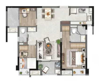一、匠心独运的户型设计 特房新玥公馆深谙居住之道,其户型设计独具匠心,从82㎡的三居室到109㎡的四居室,无论是温馨小家庭还是欢乐大家庭,都能在此觅得理想的家园。户型方正,采光通风条件优越,动静分区科学合理,每一处细节都彰显着对舒适生活的极致追求。