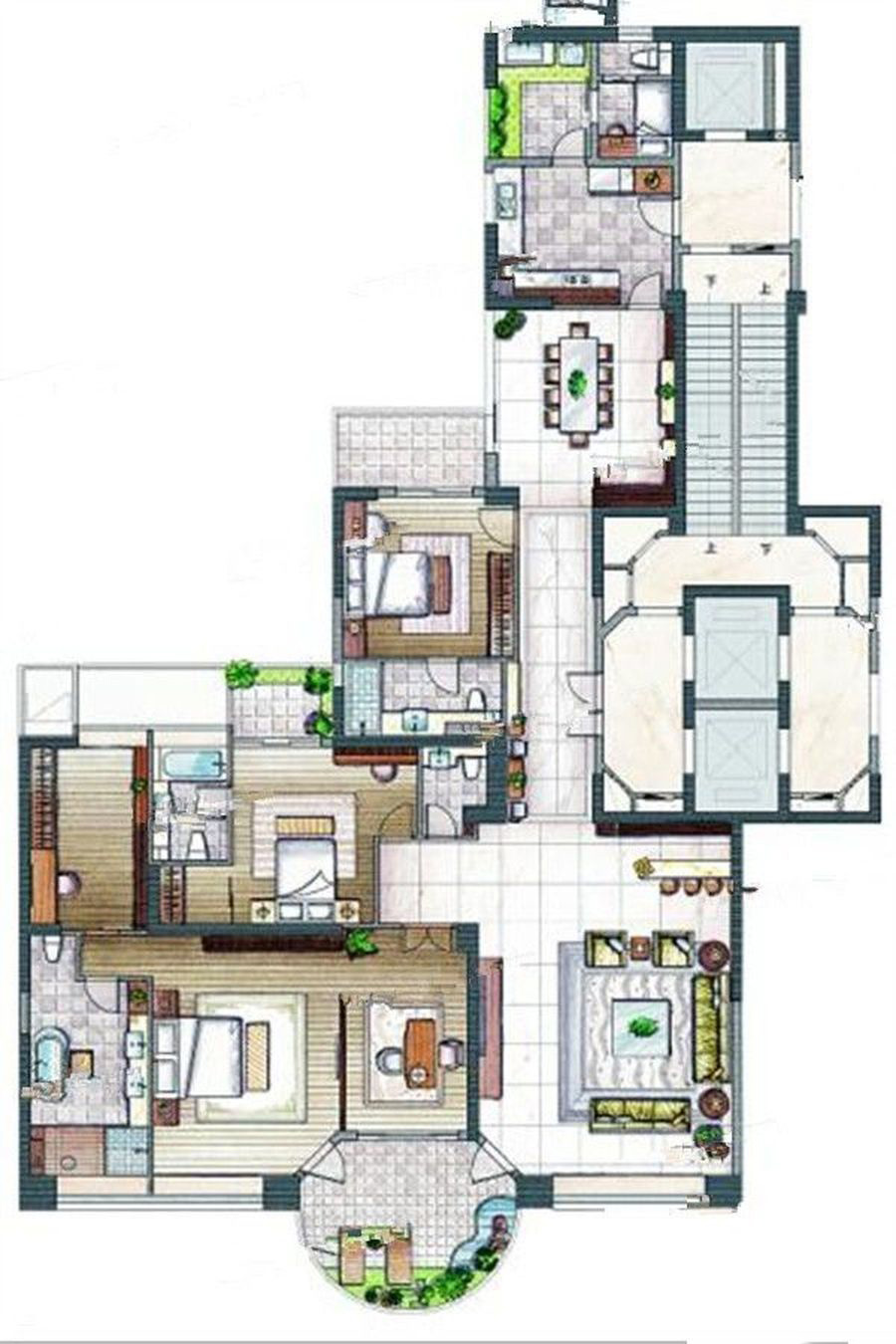 长期宅家的日子让人们对居住环境的要求更为苛刻。云顶至尊建筑面积约315万平方米的5房设计,采用三梯三户的高端配置,极大地提升了居住的舒适度。3.5米的层高不仅保证了室内空间的天然通风,让空气充分流通,关怀全家人的健康,更实现了窗墙比的最大化,将窗外的森林美景最大限度地引入室内,成为一幅悠远的风景画,滋养着居住者的心灵。