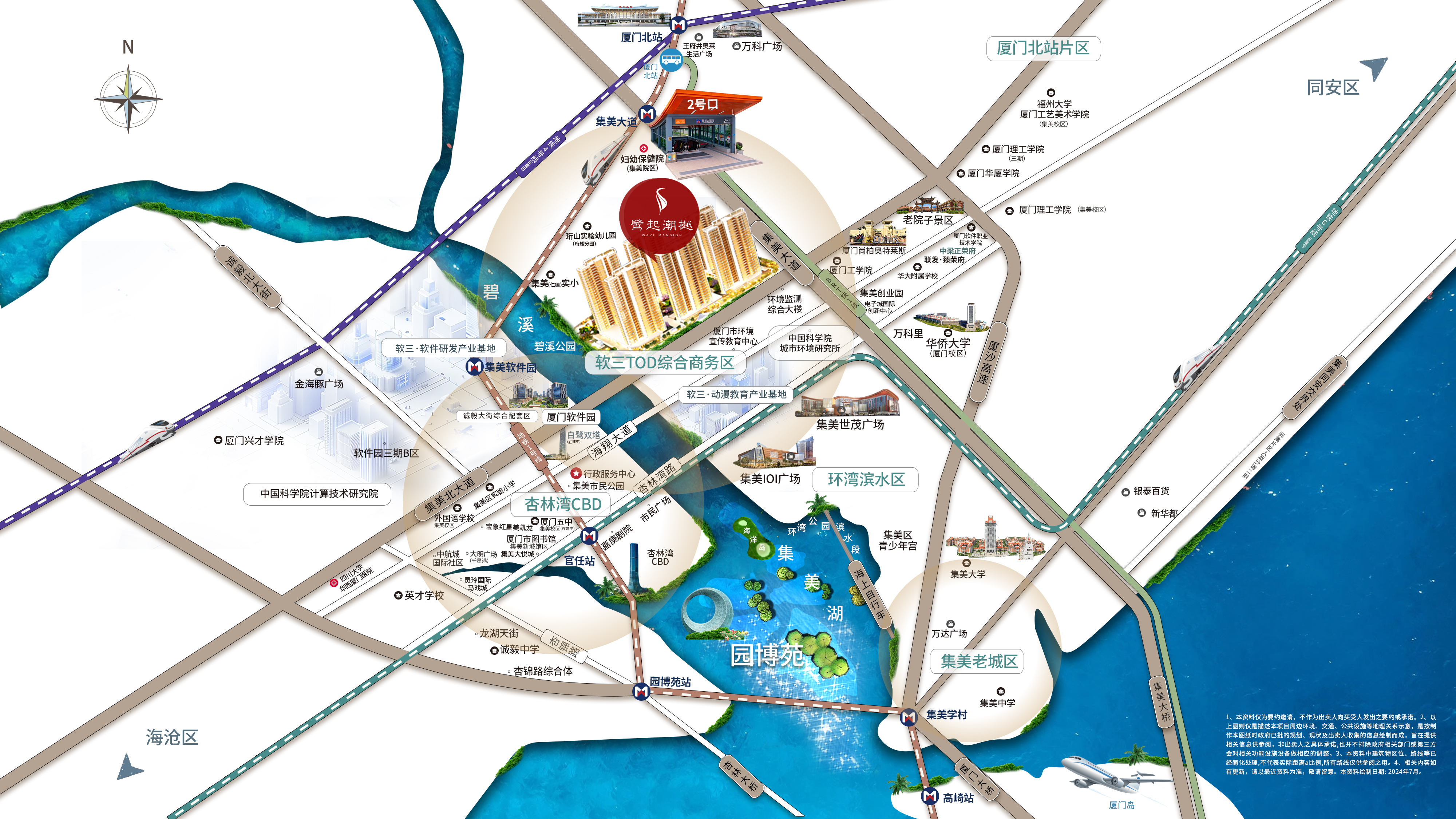 鹭起潮樾坐落于福建省厦门市集美区后溪镇集美北大道,这一地段交通网络发达、配套设施完善。项目紧邻沈海高速、海翔大道等主要交通干线,以及福厦高铁、地铁1号线/4号线、BRT快1线等多条公共交通线路,确保了居民能够快速便捷地到达岛内外及厦漳泉多地。特别是项目紧邻地铁1号线集美大道站,步行仅需约300米,真正实现了地铁出行的便利性。此外,项目还毗邻集美新城综合商务区,拥有众多企业和机构,为居民提供了丰富的就业机会和商业机会。