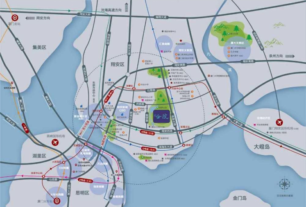 - 医疗资源:距离厦门大学附属翔安医院和岛内弘爱医院均为三甲级医院,车程均在15分钟以内,为居民的健康保驾护航。