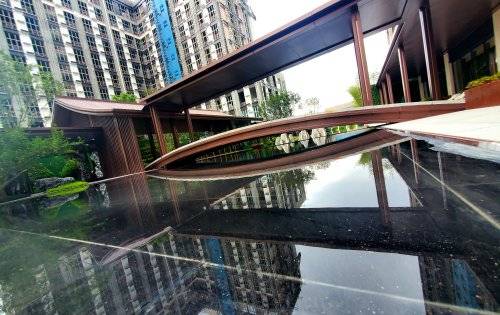 假如没有来现场理解,或许并不晓得在这个位置,会有这样的楼盘。整个项目是商住混合的地块,共4栋楼栋,一栋住宅楼,两栋商住SOHO,和一栋150米的商业办公楼。四栋楼均为干挂石材外立面,仅从外立面上看,是十分大气的,或许也是目前厦门市场在售楼盘中独一一个全石材干挂的小区。